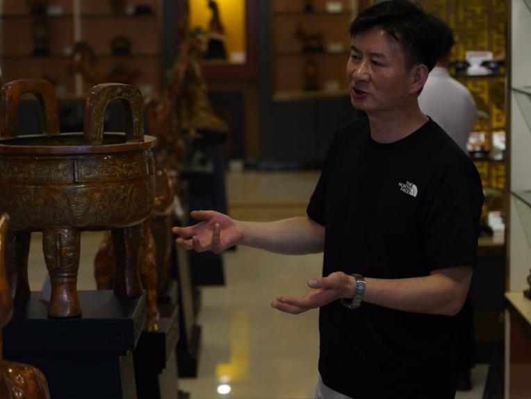 在互动环节,实践队员们围绕斑铜的材料特性、工艺难点、市场定位、人才培养以及未来发展等踊跃提问。负责人耐心解答,特别强调了传统工艺在造型设计上对云南古滇青铜文化的深刻汲取。负责人还多次表达了强烈的校企合作意愿,热切希望与中央财经大学等高校在学术研究、产品设计创新、专业人才培养、文化传播推广等方面建立深度合作,共同探索非遗活态传承与创新发展之路。