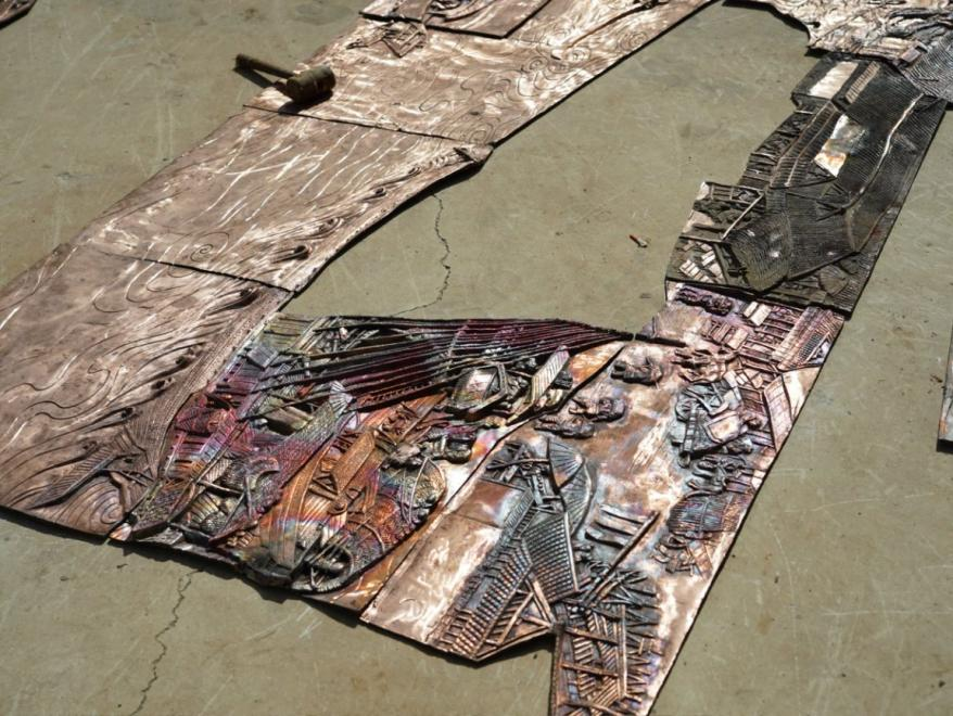 实践过程中,最令同学们震撼的,是亲眼目睹企业正在倾力打造的大型作品——长达32米的斑铜《清明上河图》。负责人介绍,此巨制由一百余块精心铸造、手工雕刻打磨的斑铜板拼接而成,旨在以这一国之重宝的艺术形式再现千古名画的风采。师生们真切感受到工匠们一丝不苟的雕琢与镶嵌技艺,深刻体会到大型艺术品创作所凝聚的智慧与汗水。
