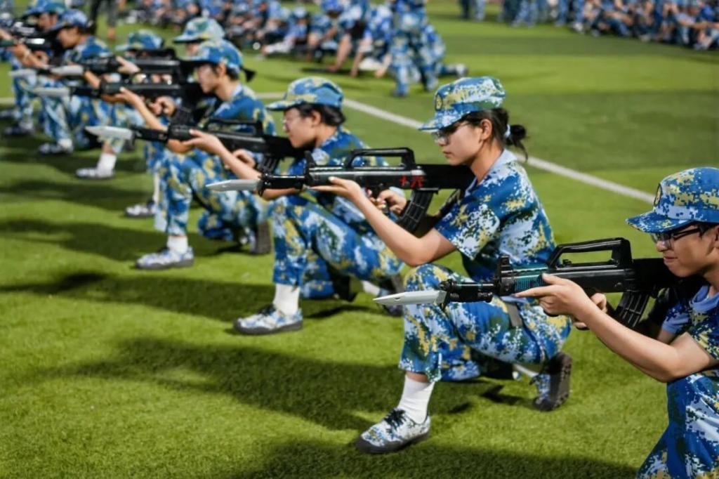 训练场上,外院学子身着迷彩