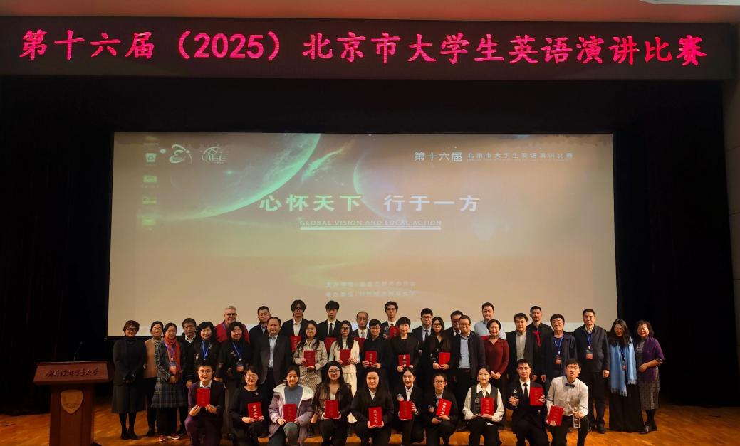 北京市大学生英语演讲比赛持续致力于推动外语学科建设、课程创新和教材体系改革,积极促进课程思政与新文科建设,旨在培养具有家国情怀、国际视野和专业本领的高层次国际传播人才。本届大赛自启动以来广受关注,北京高校学子踊跃参赛,充分展现出新时代青年昂扬向上的精神风貌。我校学子在比赛中取得优异成绩,展现了扎实的语言能力与开放的国际视野,也彰显了我校外语教育在人才培养方面的显著成效。