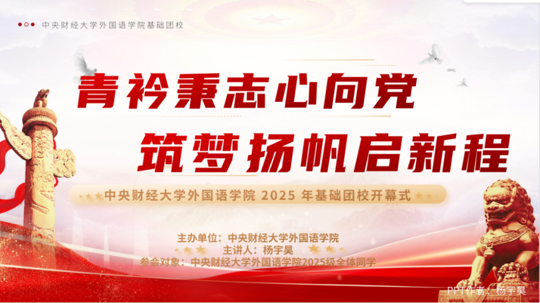 “浩渺行无极,扬帆但信风。”愿全体2025级团员以此次开幕式为起点,在基础团校的平台上锤炼本领、砥砺理想,以青春之我、奋斗之我,投身于强国建设与民族复兴的宏伟征程,书写属于外院青年的熠熠华章!