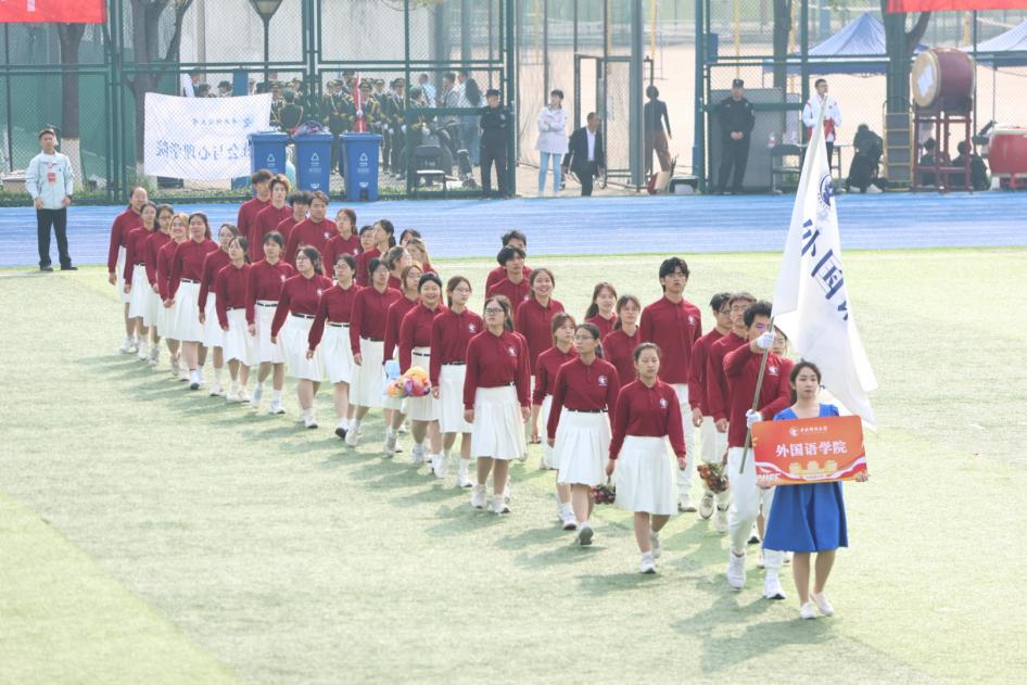 天朗气清,灼灼芳华。明媚暖阳洒满运动赛场,外国语学院的学子们意气风发、一展青春风采。运动会开幕式上,外国语学院方阵全体学子满怀热忱与激情,迈着整齐坚定的步伐依次入场,充分展现了语通天下的开阔胸怀与财智全球的青年底气,尽显外院学子的昂扬志气与理想担当。