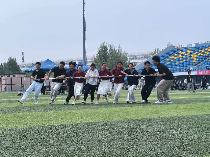 趣味项目赛场上,旋风跑的比拼格外扣人心弦。外国语学院的队员们紧握长杆、步调一致,转弯时精准控速、行进间默契同频,全员心往一处想、劲往一处使,全程配合流畅、节奏丝毫不乱。大家在奔跑中彼此信任、互相鼓劲,在协作中消解阻力、全速向前,将团结的力量发挥到极致。最终,凭借全员的出色发挥与绝佳默契,我院队伍在全校激烈角逐中脱颖而出,一举斩获全校亚军的优异成绩,为本次运动会再添亮眼荣光。