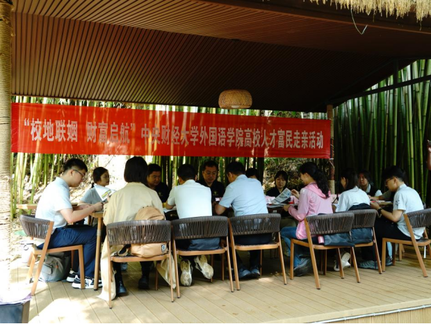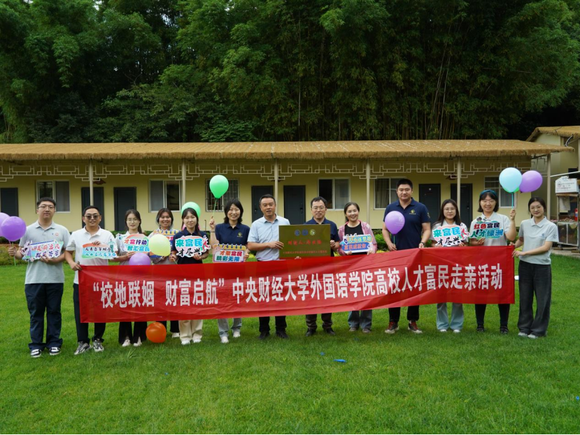 2025 年7月7日,“校地联姻 财富启航”中央财经大学外国语学院高校人才富民走亲活动座谈交流会在富民县正式召开。中央财经大学外国语学院党委书记冯俊波、党委副书记王珊珊、学工办主任宋一民、院团委书记齐芳欣及本、硕学生,与富民县县委组织部主要领导、分管领导,散旦镇相关领导,人才工作科工作人员共同参会,拉开了这场为期一周的交流活动序幕。