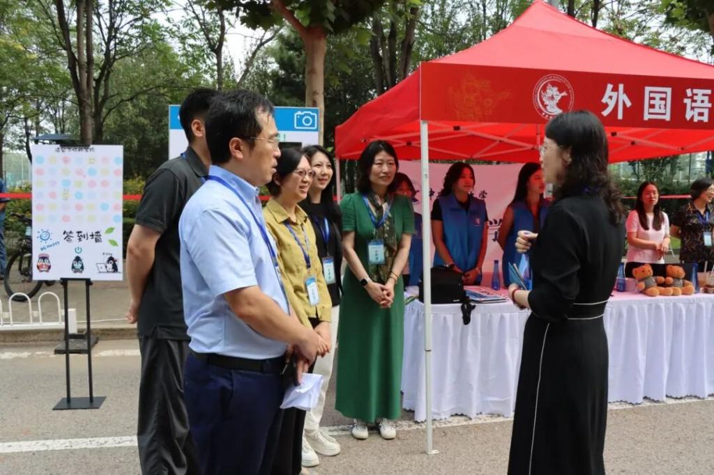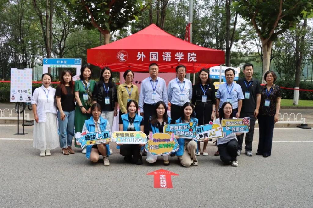 外国语学院党委书记冯俊波,院长黄振华,副院长王洪亮、张润晗,党委副书记王珊珊,院团委书记齐芳欣,研究生导师范莉老师与王素娥老师等来到迎新现场迎接新生。老师们亲切地同新生同学交流,体现学院领导老师们对新生的关怀和重视。