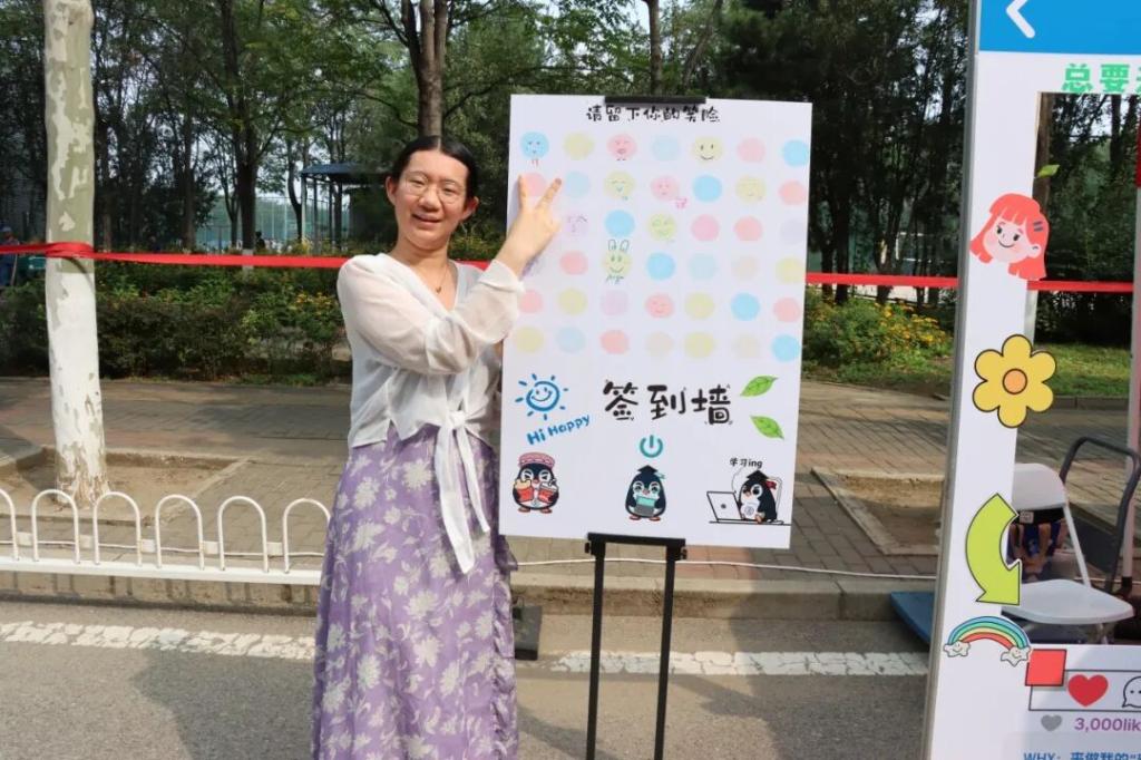 迎新打卡现场处处洋溢着热烈欢快的氛围,将校园的热情与暖意直接传递到新生和家长心中;打卡区精心摆放的创意相框,搭配着充满力量的标语,成为定格美好瞬间的绝佳背景,不少新生与家长在此驻足合影,将初入校园的喜悦与期待永久留存。一旁的绘画墙更是活力满满,新生们纷纷提笔,在墙上画上笑脸,一笔一画都展现对新学期的憧憬与祝福。